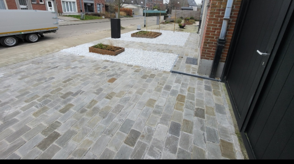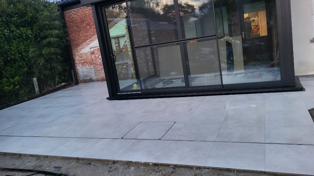 Tegelwerken Verander uw terras in een elegant en onderhoudsvriendelijk paradijs.Onze tegelwerken bieden niet alleen stijl, maar ook praktischevoordelen. Geniet van een terras dat zowel mooi als makkelijk teonderhouden is. Ik wil een offerte of heb een vraag